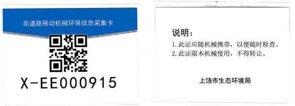 領取環保標識牌及其卡片后,分公司將申領的非道路移動機械環保標牌張貼于機械設備的左右兩側或機械尾端、操作手臂等明顯位置。 張貼完畢后要求各設備管理人員及操作人員必須注意保護好機械牌照及環保信息卡片,避免磕碰污損,以備檢查核驗。  今后,萬年分公司的非道路移動機械將像機動車一樣,擁有屬于自己的“身份證”。