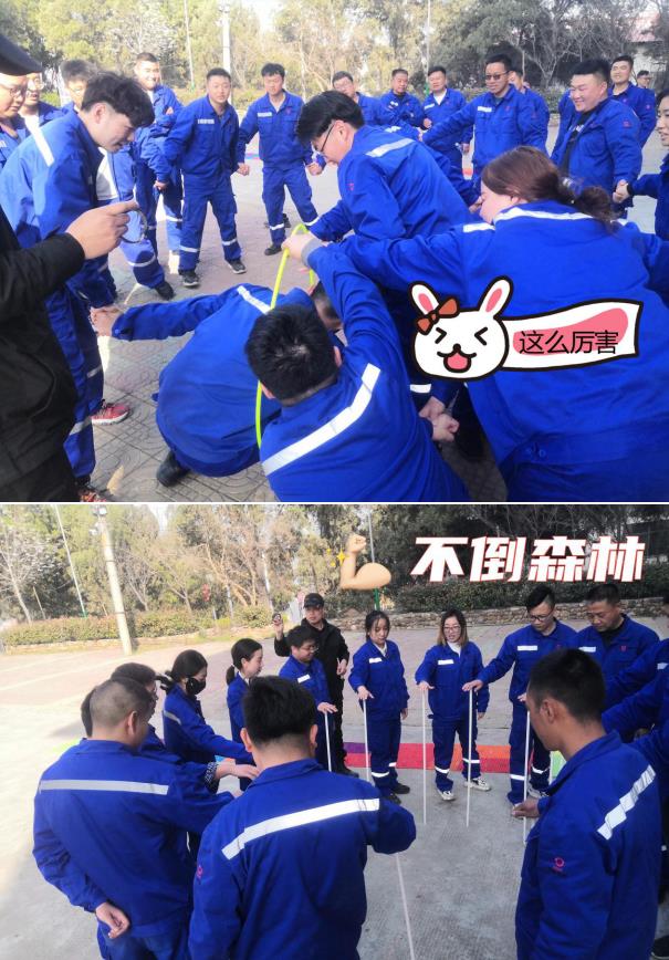 隨后又開展了摸石過河、團隊七巧板、信任背摔等趣味游戲。