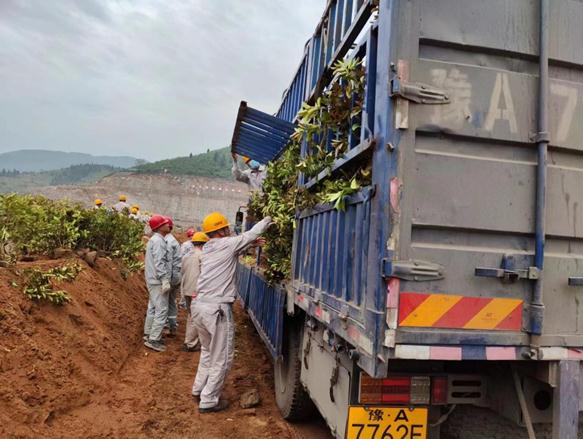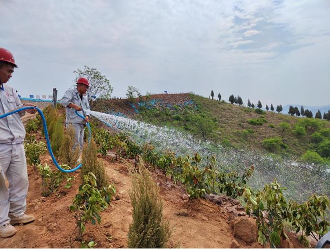 種植完后,大家拖著長長的水管,從水車上接通,水花劃出美麗的彩虹,一道道水線將生命之源給予剛剛種下的綠色希望。雖然大家已經汗流浹背,但是想著能把我們的礦山建設成為綠色礦山,花園式礦山,一個個都擼起袖子卯足勁加油干。