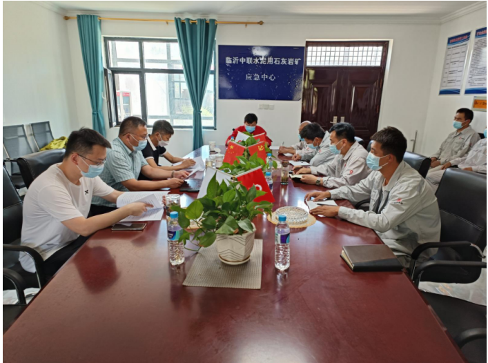本次演練由兗州中材建設有限公司紀委書記魯臣為應急演練指揮小組組長、副總工程師閆永平和蘭陵分公司經(jīng)理為副組長,演練前在蘭陵分公司會室進行了演練部署和培訓。