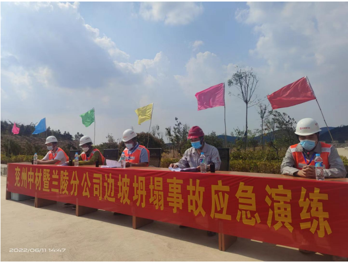 | 2022年6月11日,為增強員工安全防范意識和提高應急處置能力,強化員工應對災害事故的自救和搶險技能,加深對分公司應急預案的了解程度、提高應急救援流程的知悉度。兗州中材建設有限公司在臨沂中聯(lián)水泥有限公司水泥用石灰?guī)r礦現(xiàn)場舉辦坍塌事故應急演練活動。