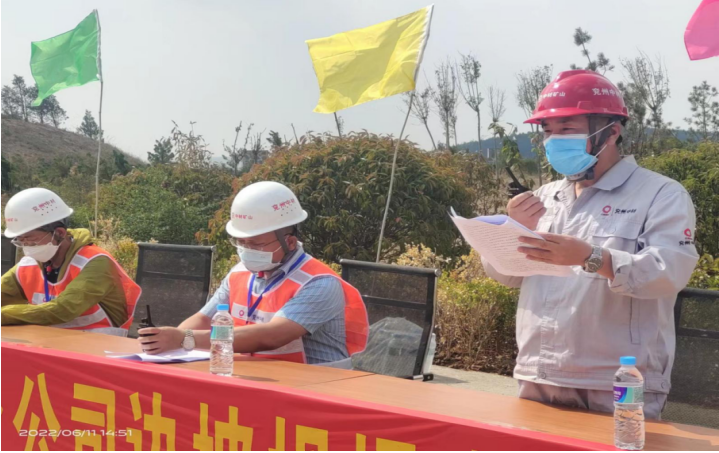本次演練主要是模擬邊坡坍塌人員被砸傷的情景,演練開始,首先由現(xiàn)場工作人員按照預案進行事故上報,接著現(xiàn)場負責人王海生安排所有作業(yè)人員和設備撤離現(xiàn)場并上報應急指揮小組,副組長龔士朋在接警后向組長魯臣匯報情況后請示啟動應急救援預案,組長魯臣下達指令:“立即啟動應急救援預案!”副組長龔士朋迅速組織通信警戒組、搶險救援組、物資保障組等按照各小組的分工與職責,趕赴現(xiàn)場展開救援,轉移受傷人離開險境,緊急處理傷員傷勢并與現(xiàn)場等候的120急救人員協(xié)力送醫(yī)救治,圓滿完成各項演練任務。