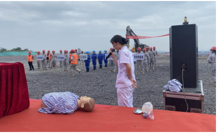 演練結束后,大家匯聚在現場安全平臺,由玉山縣藍天救援隊隊長許慶華為大家講解現場緊急救援要點、玉山縣人民醫院護士長為我們講解并現場演示心肺復蘇及外傷現場應急處置方法。通過本次聯合演練及專業知識講解學習,我們學習到在現場救援時,首先要進行環境評估,觀察場地是否存在二次危險,觀察好逃生路線,不要慌張,不要輕易搬動患者及正確對骨折患者如何轉移的要點。