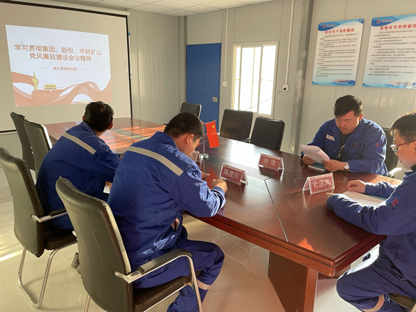 2021年4月9日,焦作晉城黨支部召開全體黨員大會,集中學(xué)習(xí)貫徹落實2021年中國建材集團、中國建材股份、中材礦山黨風廉政建設(shè)會議材料,會議由支部書記杜國賓支持,支部全體黨員參加。