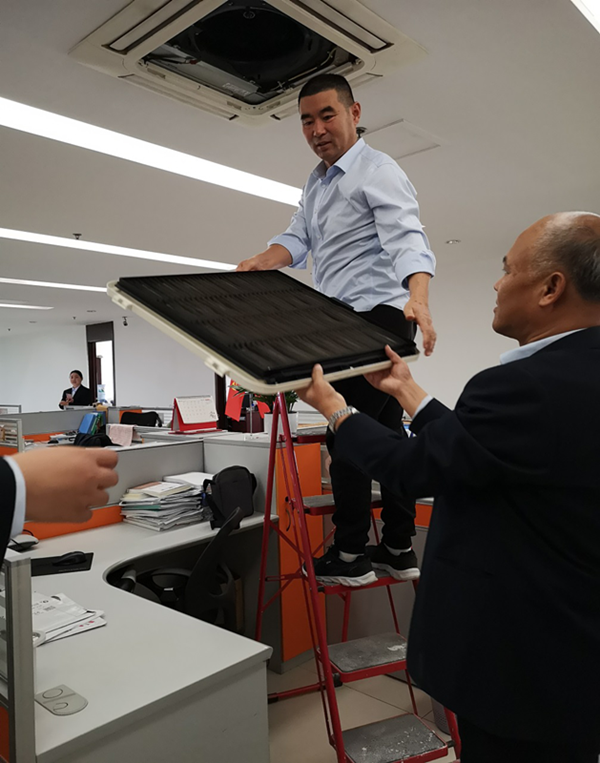 為扎實開展“不忘初心 牢記使命”主題教育,充分發揮黨員先鋒模范作用,11月11日,濟南支部開展 “不忘初心 牢記使命”主題教育黨員志愿服務活動。支部書記高金軒同志帶領黨員全面清洗辦公區空調過濾網。經過一個夏天的使用,空調進風口格柵和過濾網已經布滿灰塵,同志們不怕臟不怕累,挨個拆卸、清洗、擦拭、晾曬,將每個過濾網清洗的潔凈如新。