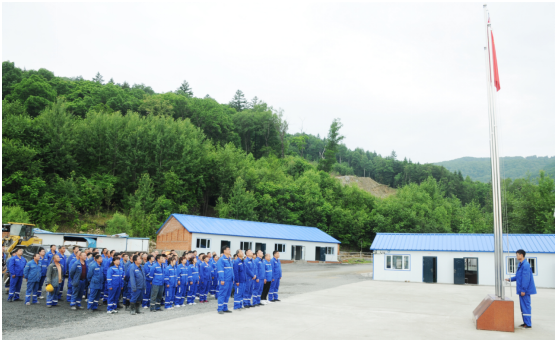 2022年7月1日, 兗州中材和龍分公司在Ⅳ號礦組辦公生活區舉行“升國旗、唱國歌”儀式,風展紅旗如畫,砥礪初心如磐。
