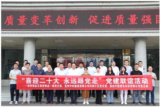 為進一步深化黨建聯建共建,凝聚發展合力,9月17日上午,河南片區黨支部代表赴登封中聯登電水泥有限公司與登封中聯登電水泥黨支部、鄭州商品交易所商品一部黨支部開展黨建聯誼活動。