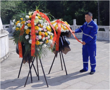 驚雷浮雕、陳獨(dú)秀銅像、新青年碑刻......走過(guò)柏林墓道,來(lái)到陳獨(dú)秀先生的墓前,項(xiàng)目執(zhí)行經(jīng)理張作鋼同志代表公司敬獻(xiàn)花圈,帶領(lǐng)全體黨員和青年同志,懷著無(wú)比崇高的敬意,恭敬地向墓碑三鞠躬,用行動(dòng)表達(dá)對(duì)先生的敬仰之情。