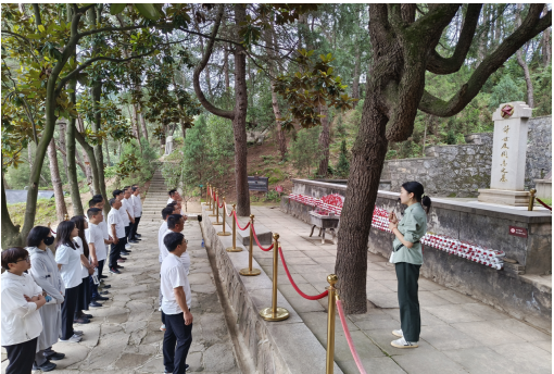 29日,共同前往紅色大別山,在鄂豫皖蘇區首府革命烈士紀念館中,以傾盆大雨寄哀思,拾級而上,同志們身著白色上衣整齊列隊肅立在革命烈士紀念碑廣場,面朝莊嚴肅穆的紀念碑,在宋道明同志的帶領下,全體低頭默哀,沉痛哀悼英勇犧牲的烈士,并共同向烈士敬獻花籃,同志們莊重的舉起右手,面對鮮紅的黨旗,“我志愿加入中國共產黨,擁護黨的綱領……永不叛黨。”在鏗鏘有力的誓詞中,重溫入黨初心,同志們初心受到洗禮,理想信念更加堅定。